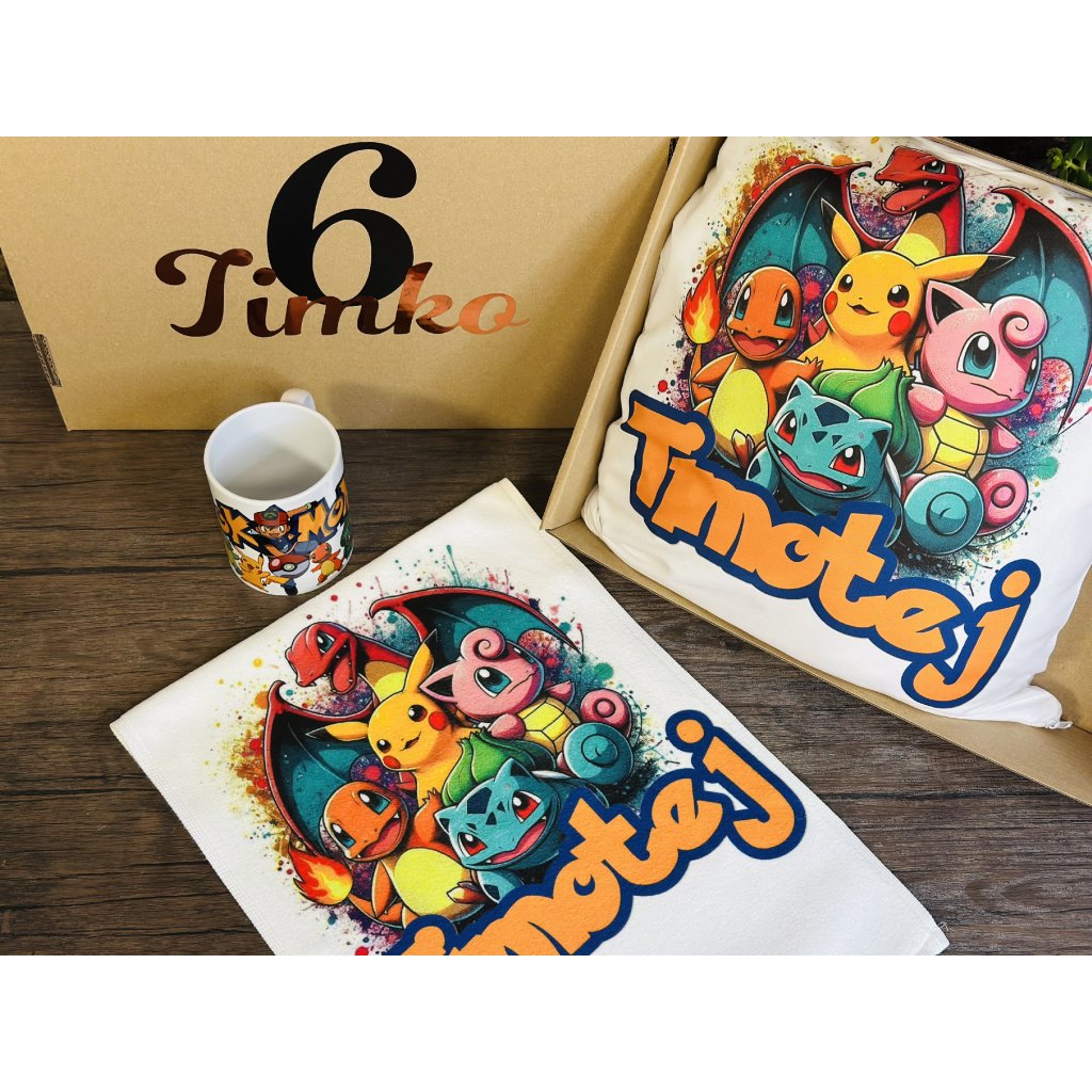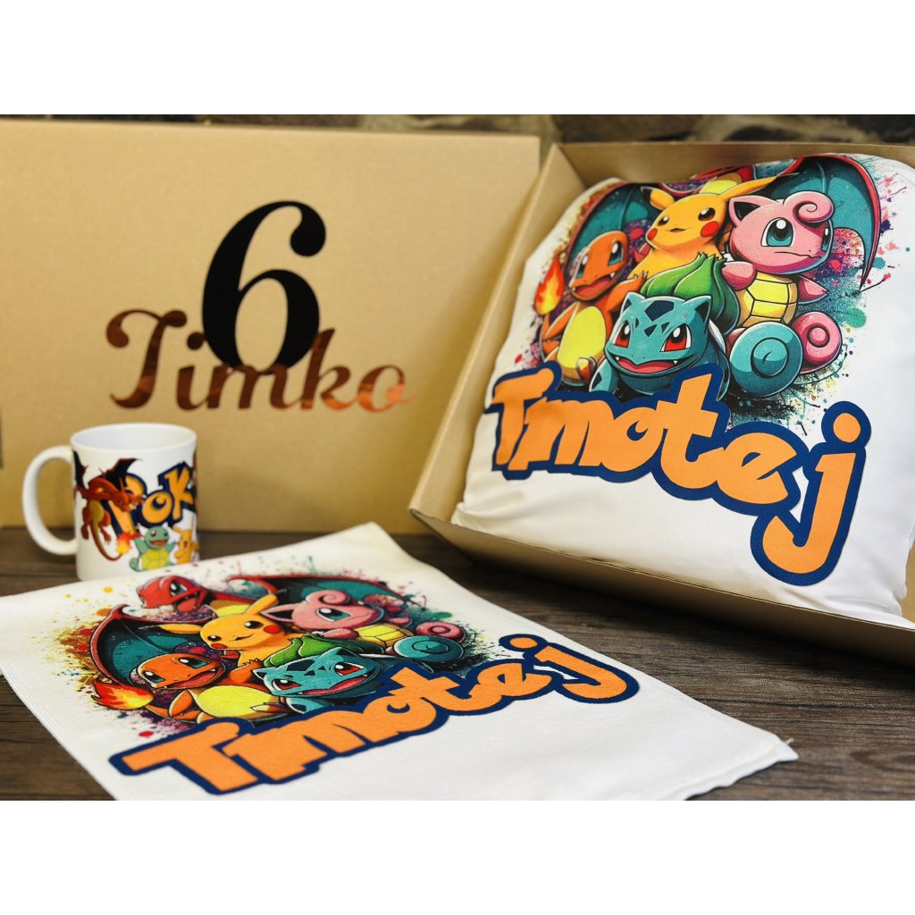 Všetky produkty sú ideálne pre milovníkov rozprávky, ktorí si chcú pripomenúť svoje obľúbené momenty počas cdelého dňa. Tento box je skvelým spôsobom, ako potešiť každého milovníka rozprávky POKÉMON ! Do poznámky k objednávke doplňte meno na vankúšik a uterák.