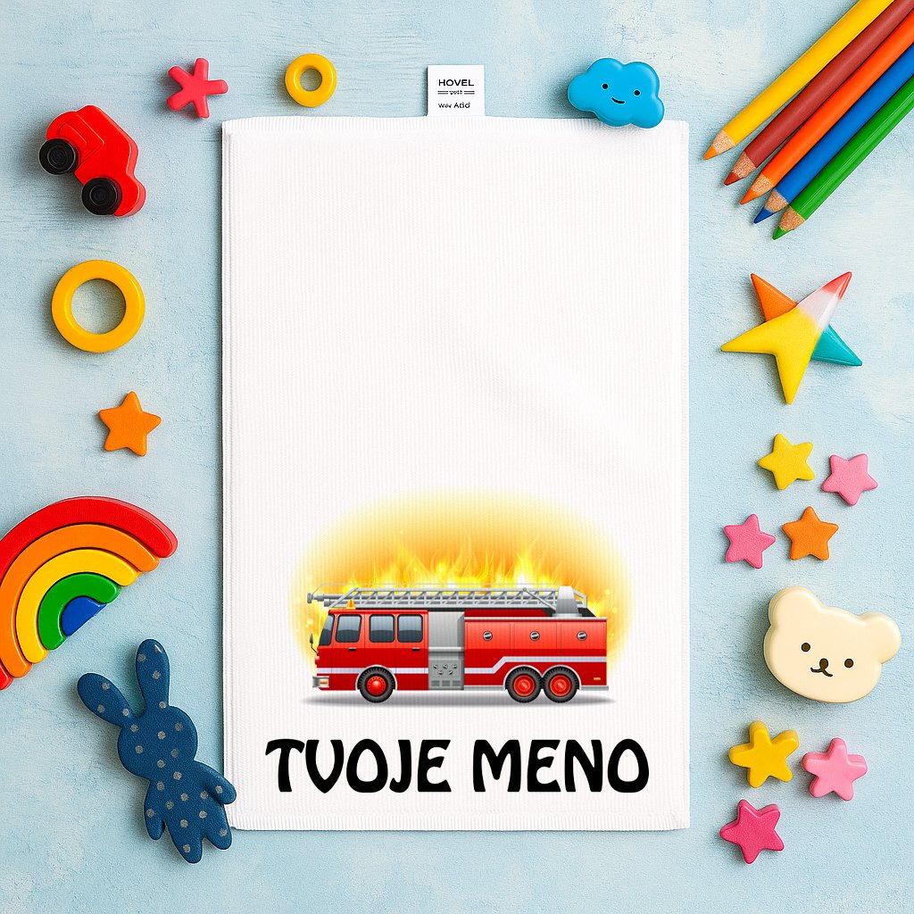 detský uterák s potlačou a vlastným menom - hasičské auto