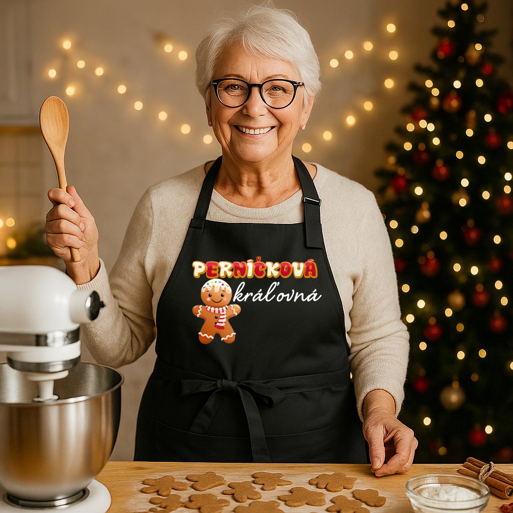 kuchynská vianočná zástera s potlačou - perníčková kráľovná