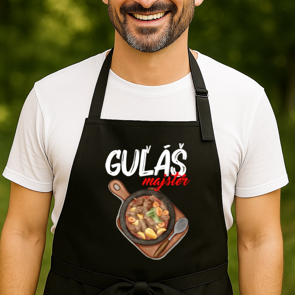 Originálna zástera s potlačou GUĽÁŠMAJSTER je praktický a štýlový doplnok ku kotlíku no aj do kuchyne. Vďaka nastaviteľnému popruhu a veľkému prednému vrecku poskytuje pohodlie aj funkčnosť. Kvalitný materiál zaručí dlhú životnosť a potlač „Guľášmajster“ robí zo zásterky perfektný darček pre každého grilovacieho majstra.