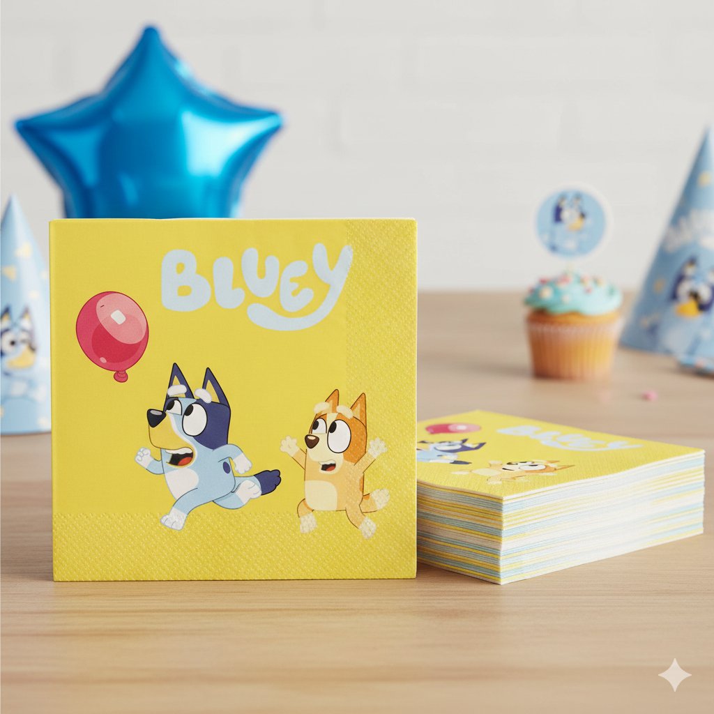 Žiadna poriadna oslava sa nezaobíde bez chutného občerstvenia, a kde sú deti, tam nesmú chýbať ani praktické servítky. Tieto veselé papierové servítky s motívom hravej Bluey a jej sestričky Bingo rozžiaria váš prestretý stôl a premenia aj obyčajné stolovanie na rozprávkový zážitok.